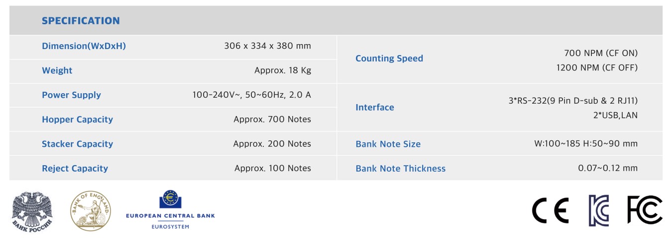 - Может обрабатывать 3 задачи (сканирование чеков, подсчет наличных денег, обнаружение подделок) . Это может уменьшить бюджет покупки и ускорить время обработки задачи.