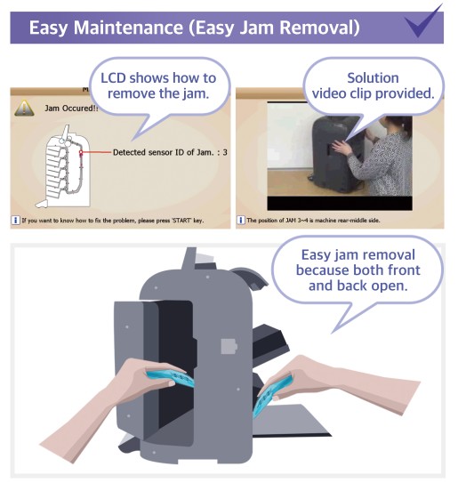 SB-5000 легко удаляет застревание и есть руководство, как устранить замятие с видеоклипом.